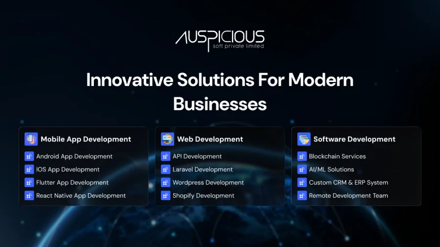 AuspiciousSoft Pvt. Ltd. is a global software development company delivering innovative mobile apps, web platforms, and custom software solutions for startups and enterprises. With 8+ years of experience and 200+ successful projects, our team specializes in technologies such as AI/ML, blockchain, CRM & ERP systems, and scalable cloud-based applications. We focus on building secure, high-performance, and user-centric digital products that help businesses streamline operations, improve efficiency, and accelerate growth in the competitive digital landscape.