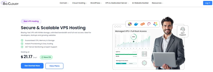 Security is a priority, with firewalls, DDoS protection, and advanced tools like Imunify360 keeping sites safe. Their 24/7 support team is always ready to assist, making sure your website stays up. BigCloudy fits all hosting needs, from small WordPress sites to large business applications, serving not just as a hosting provider, but as a partner.