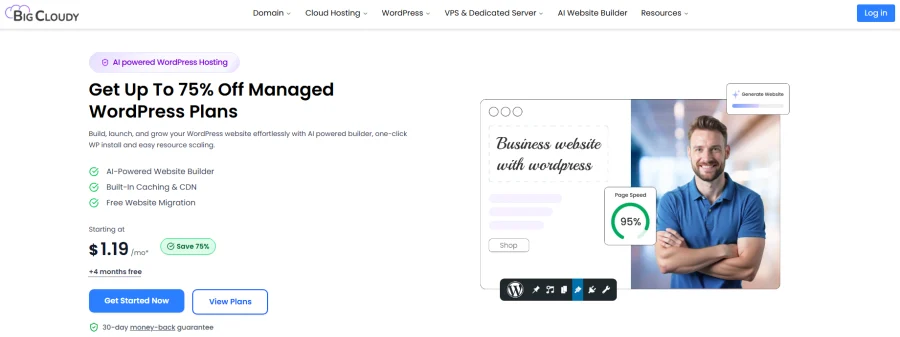 BigCloudy is a reliable web hosting company that offers a range of services like cloud hosting, VPS, WordPress hosting, shared hosting, dedicated servers, and an easy-to-use AI website builder. Designed for speed, security, and simplicity, BigCloudy helps businesses and individuals get online and grow without hassle. With data centers across India, the USA, the UK, Singapore, and the Netherlands, it ensures fast website loading no matter where your visitors are located. The platform features a user-friendly control panel, fast NVMe storage, free SSL certificates, and smooth website migration handled by the support team.
