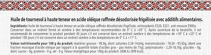 – Résistant à l’oxydation : l’huile n’est pas amère, a une durée de conservation plus longue