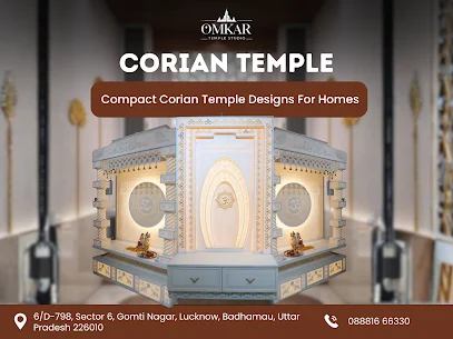 Omkar Temple Studio specializes in designing and crafting premium marble and Corian home temples across Uttar Pradesh. We create elegant, durable, and customized mandirs that perfectly match your home interiors and spiritual needs. From modern Corian temples to traditional marble mandirs, our designs blend aesthetics with devotion. Whether you want a small home temple or a grand customized mandir, Omkar Temple Studio ensures top-quality craftsmanship, beautiful finishing, and timely delivery.
